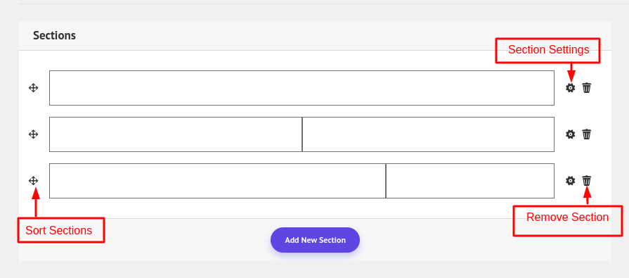 You can create multiple sections with different layouts. You can sort them and change their position. You can Remove a section and also update the section Settings.