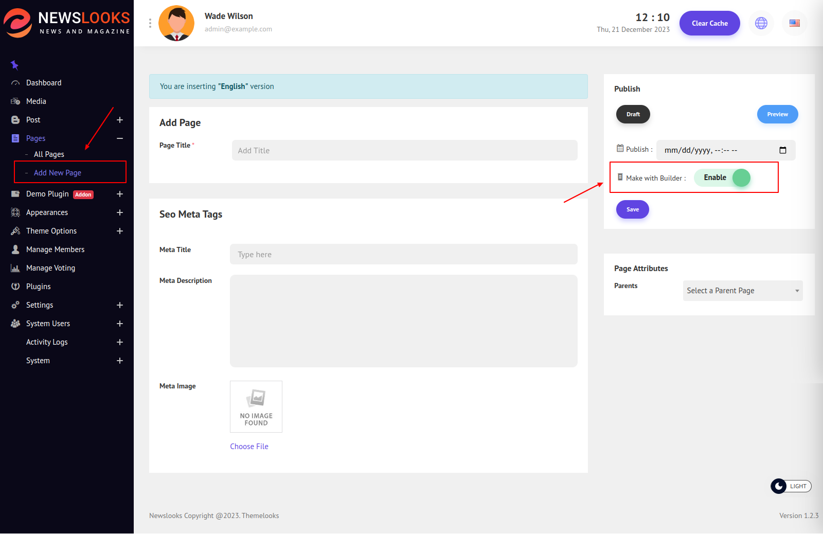 Page Builder is an awesome Plugin to Make More Dynamic and Customizable Pages for Newslooks. From Here, You Can Build Many Pages with The Available Widgets. And You Can make them a Homepage Also. So let's see how you can make an incredible page of yours.