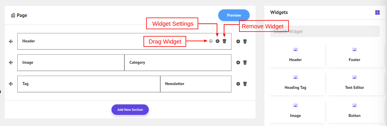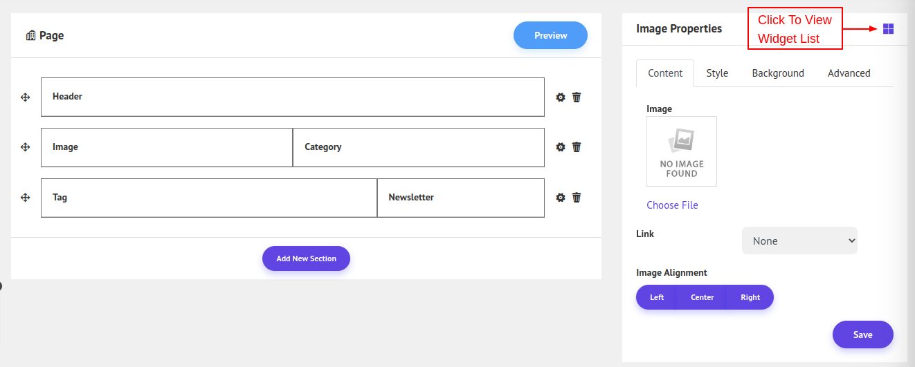 You have to fill in all the content fields of each widget to show the widget properly. You can also add styles if you need. Now to preview What you build you can view it by clicking the Preview Button.