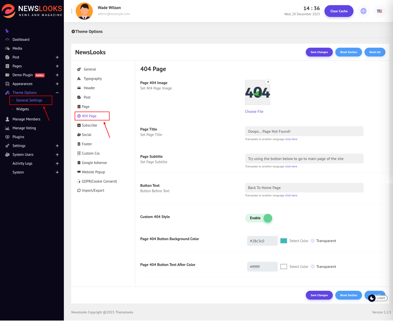 Click Save Changes to save theme options. Click Reset Section to reset only this section. Click Reset All to reset all theme options.