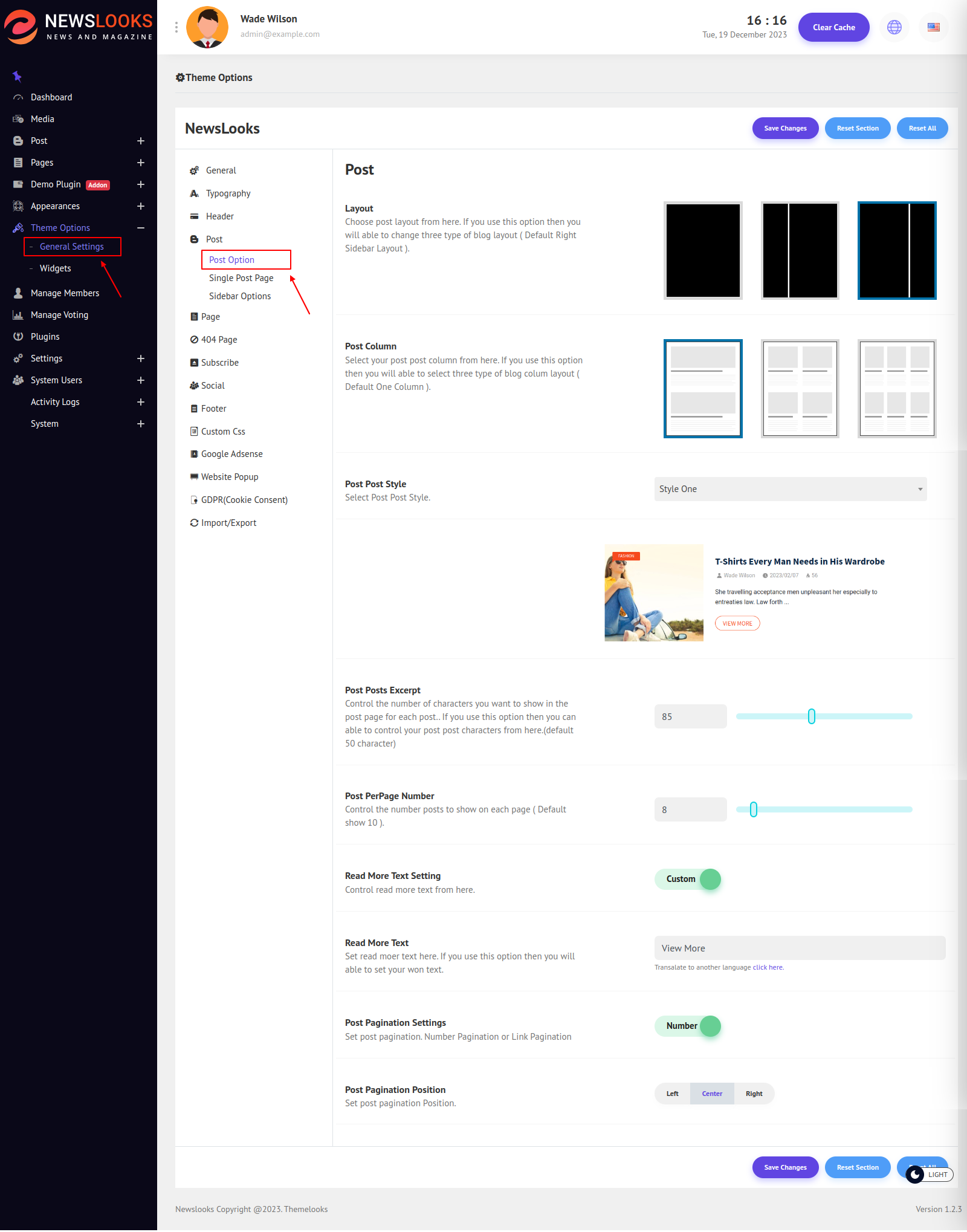 Post Pagination Settings: Select Number/Link Post Pagination.