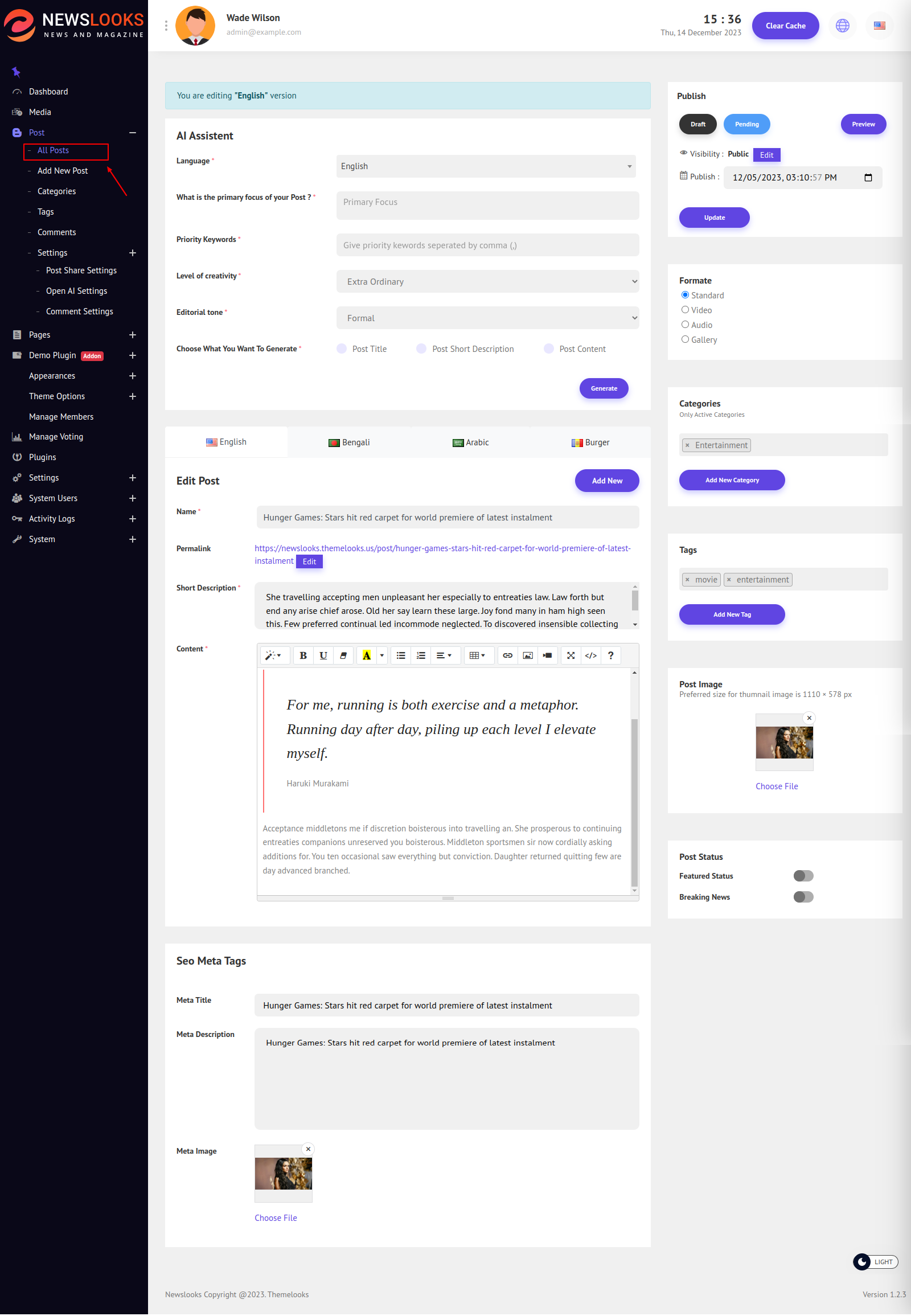 After Clicking the Edit Button You Will be Redirected to the Edit Page Where You Can Edit Your post And Save It. You can also translate your post into another language.
