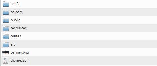 6. config: If you want to have a config file for your theme-related data, you can create a config folder. And a config.php file. And to access the config file data - "config('plugin_location.data')". Example - config('test-theme.status.active') .This config folder is required to build a theme. And a menu location array must be there -