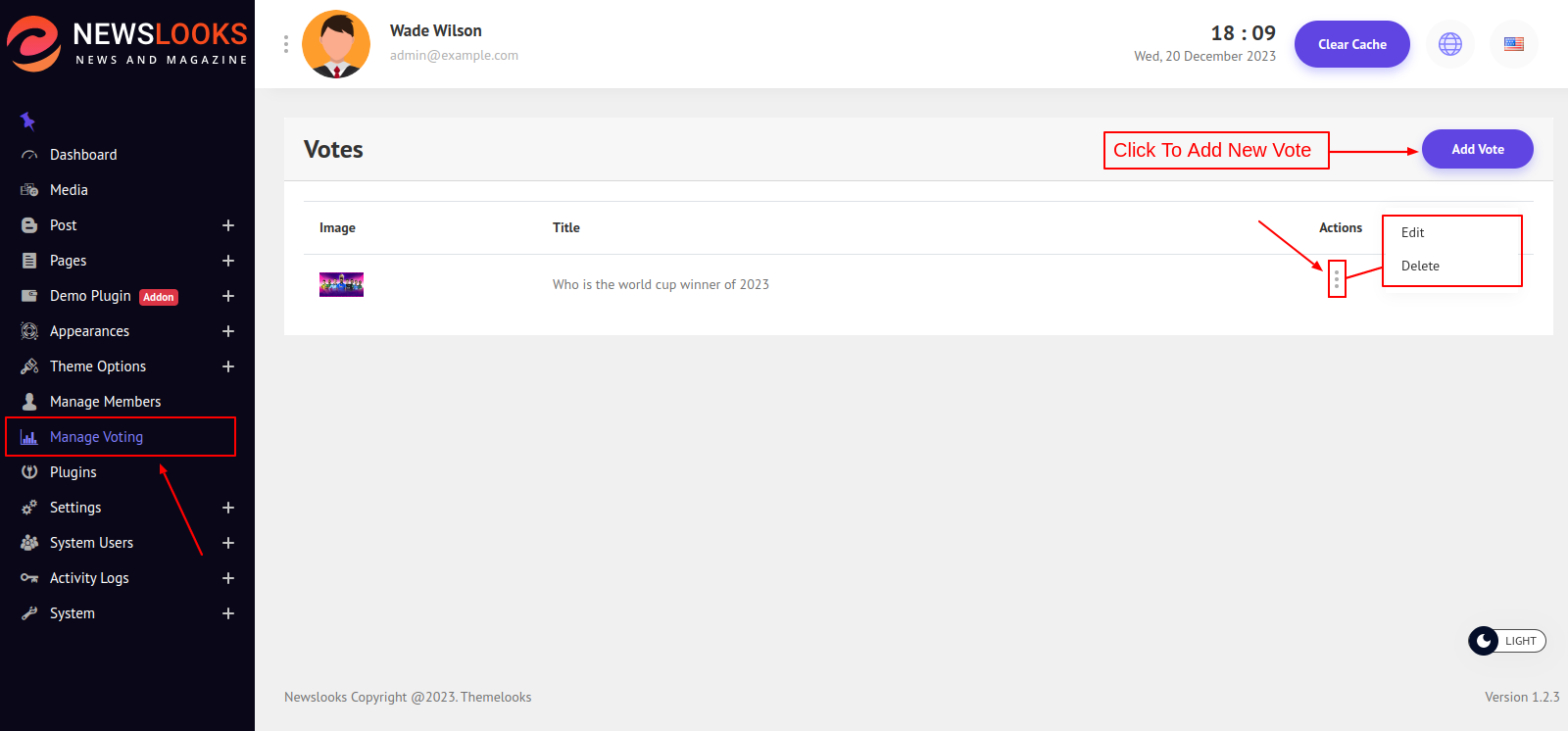 To Add A New Vote Click on Add Vote button. You will be redirected to the add vote page.