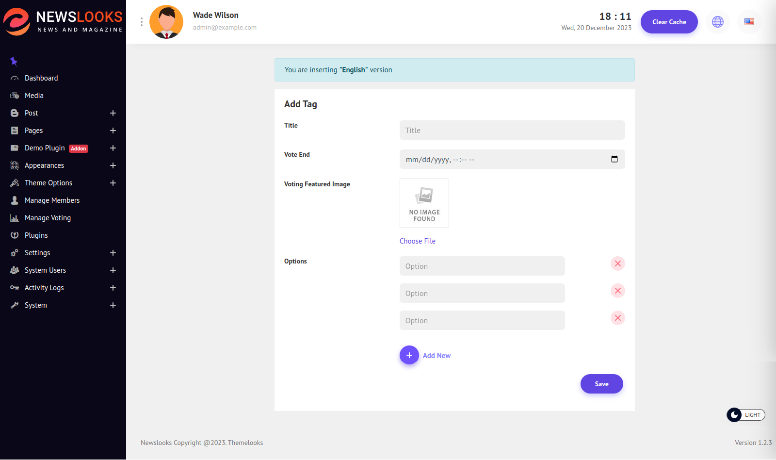 From here you can create a new vote. Set vote ending time, vote featured image, and vote options as many as you like.