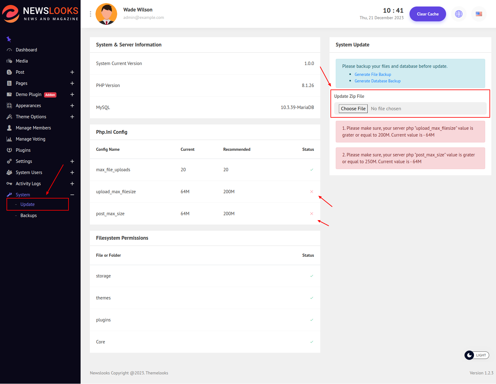 Now another way is you can also upgrade to the next version from the admin panel. Following System > Update from the sidebar.