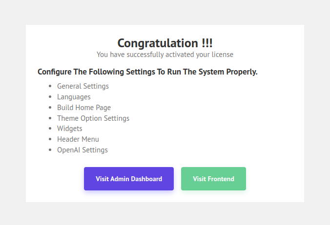 Congratulation you successfully installed the script. Now you can visit the frontend and backend of your website.