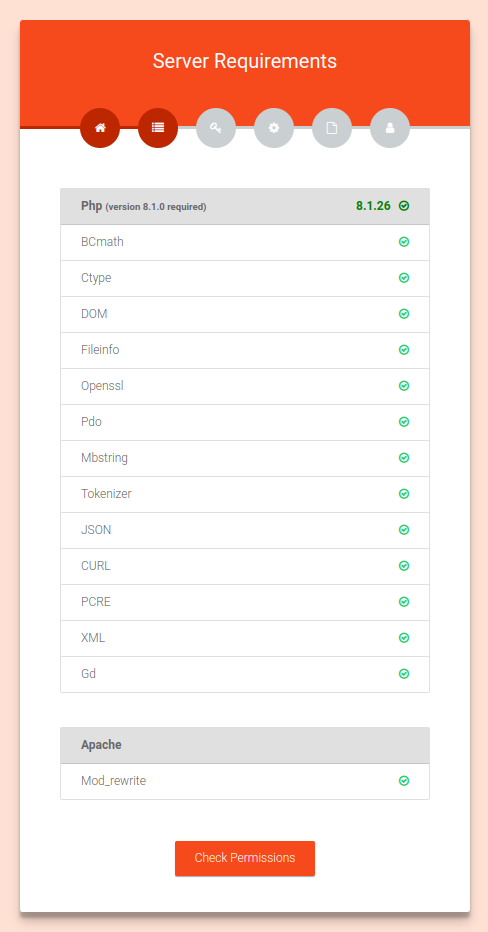 Click on the Start Installation. You will get the Server Requirements page.